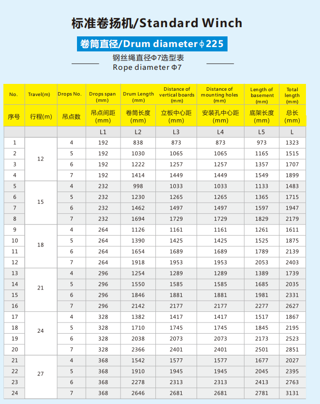 Winch drum 225