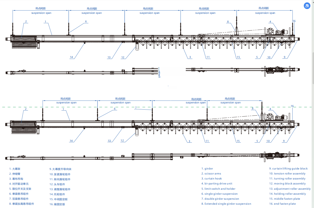 大幕機(jī)結(jié)構(gòu)圖及部件清單